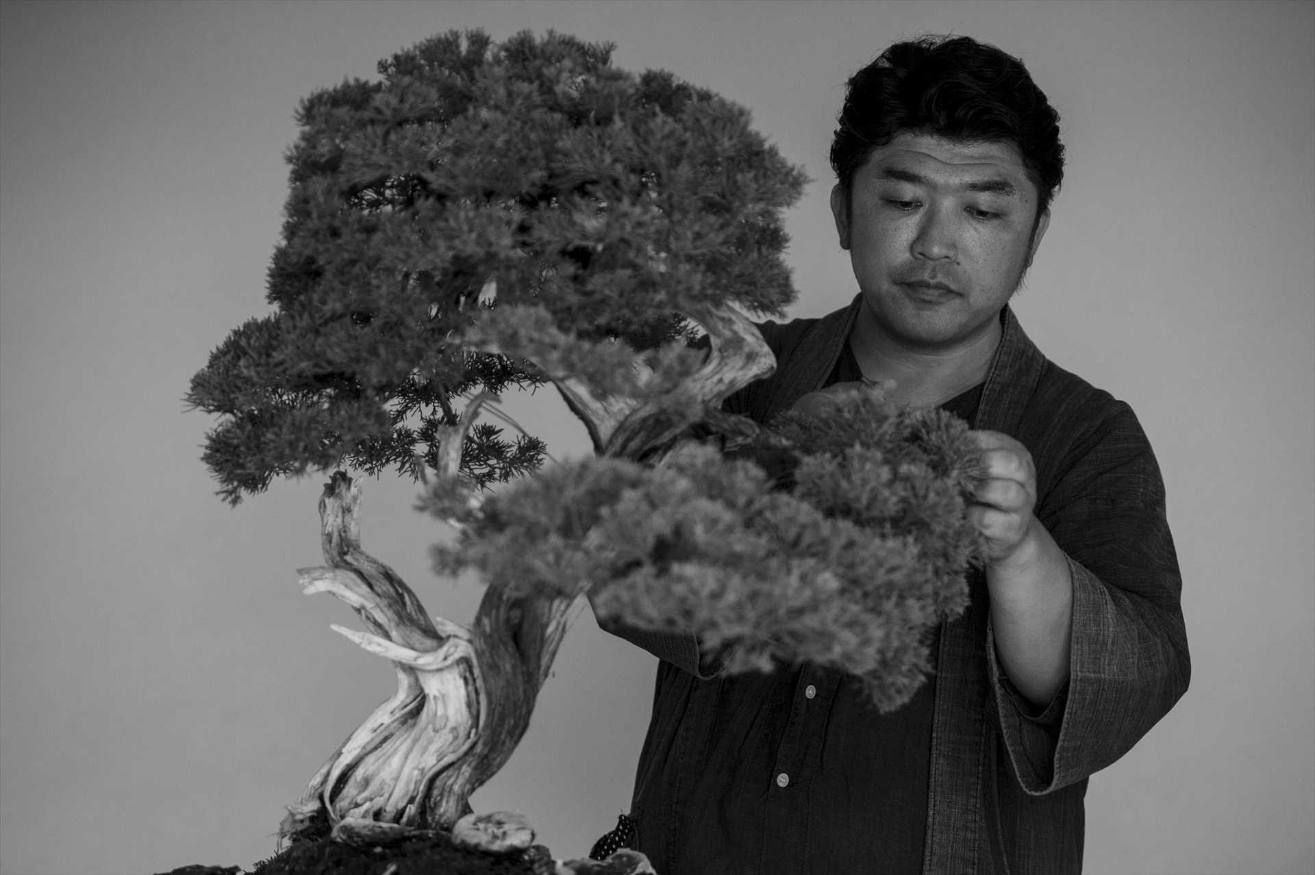 1982年熊本県生まれ。19歳に上京、そして海外へ旅に出る。帰国後、父親に生まれた記念に種を蒔いて作っていたという、もみじの盆栽を見せられ感動し、盆栽作家になる事を決意する。その後、盆栽界の名門「大樹園」へ熱意を伝え、入門を認めてもらい五年半の厳しい修行を積む。平成22年「樹心園」の看板を掲げる。盆栽界一の名門で培われた技術と卓越したセンスを持ちながらも、「盆栽LIVEショー」や苔で文字を描く「苔文字盆栽」や「盆栽デコレーション」など新しい盆栽の在り方も提唱している。日本問わず海外からも注目を浴びる盆栽作家。